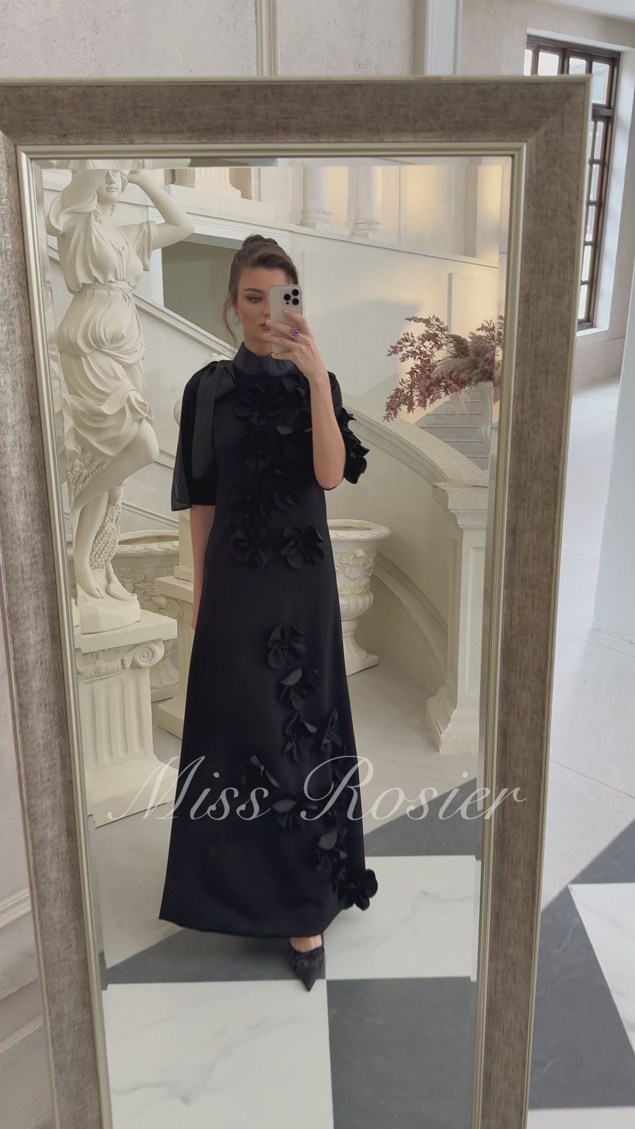 فستان طويل مزين بزخارف زهور وإكسسوارات سوداء من Isidora