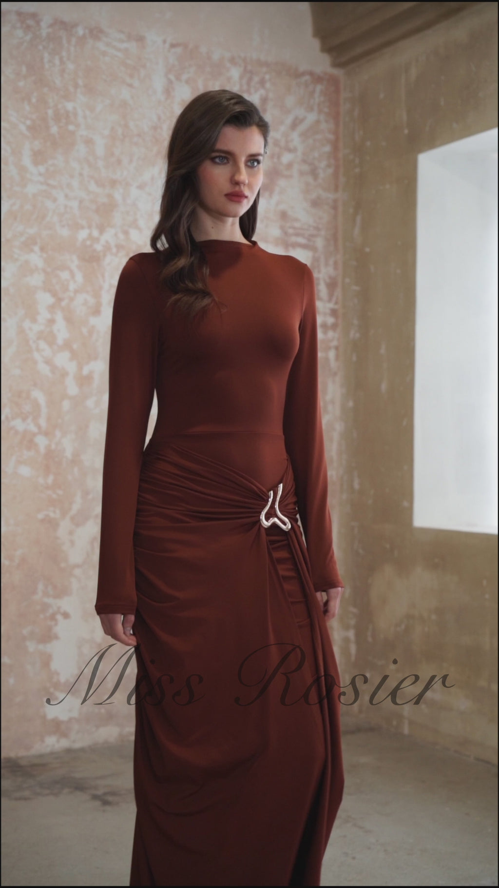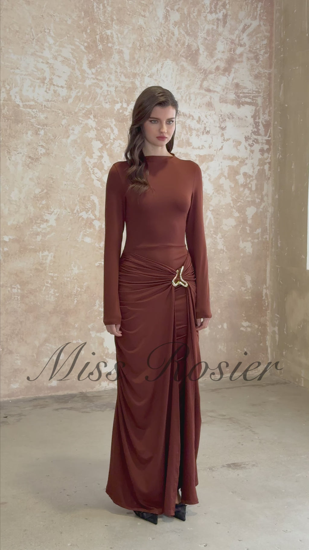 فستان ماكسي براون كامبريا مع أزرار معدنية