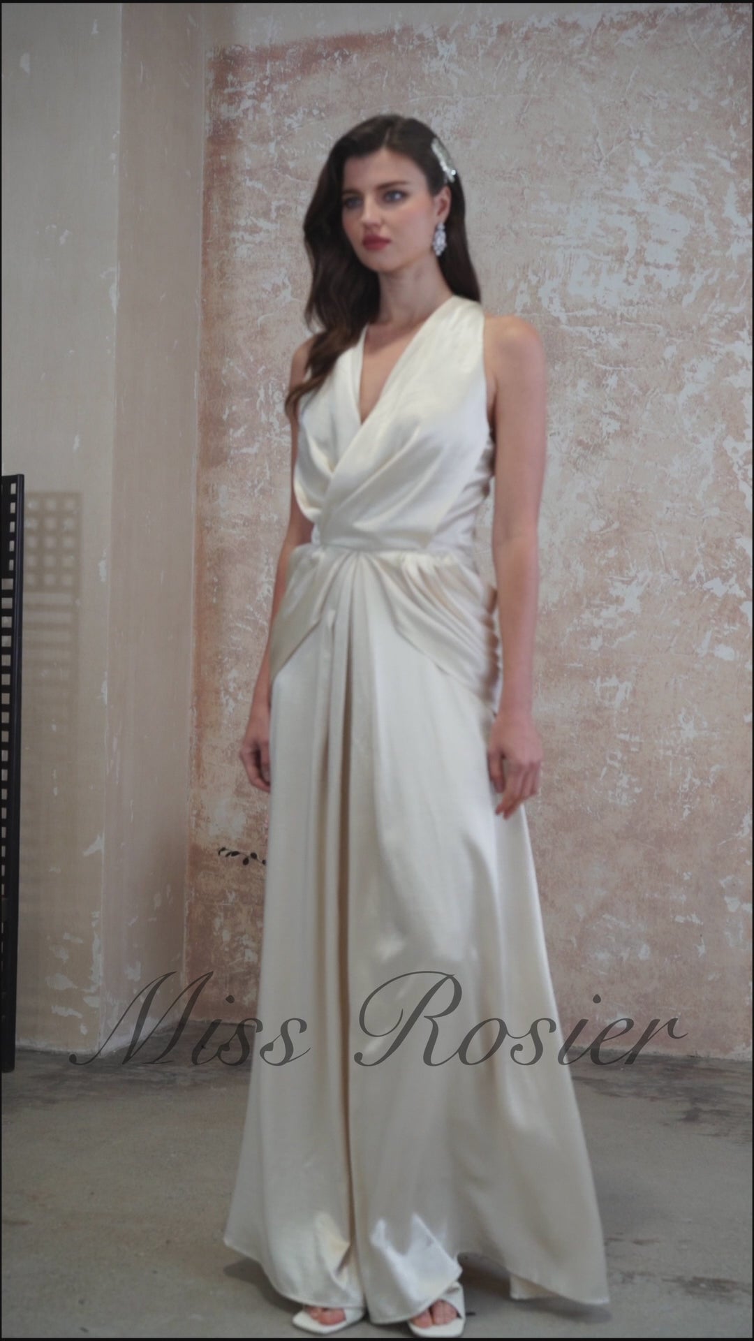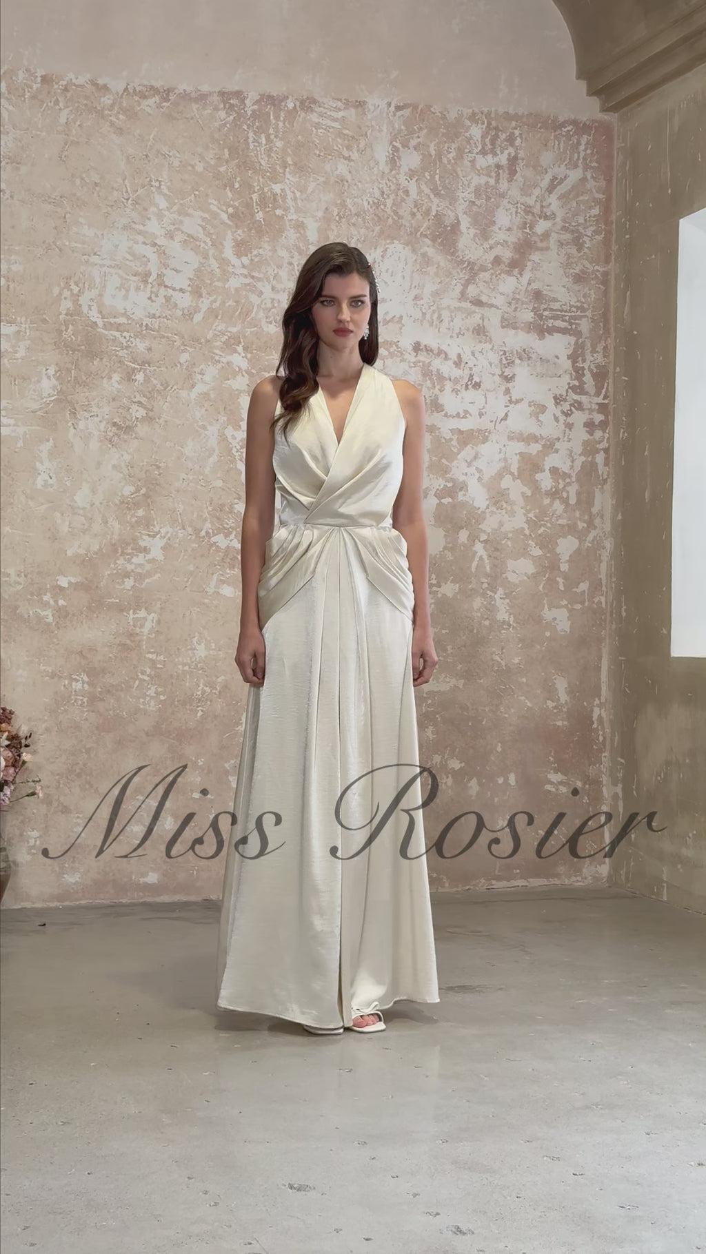 فستان طويل ملفوف برقبة حبال من كاثمور شامبانيا