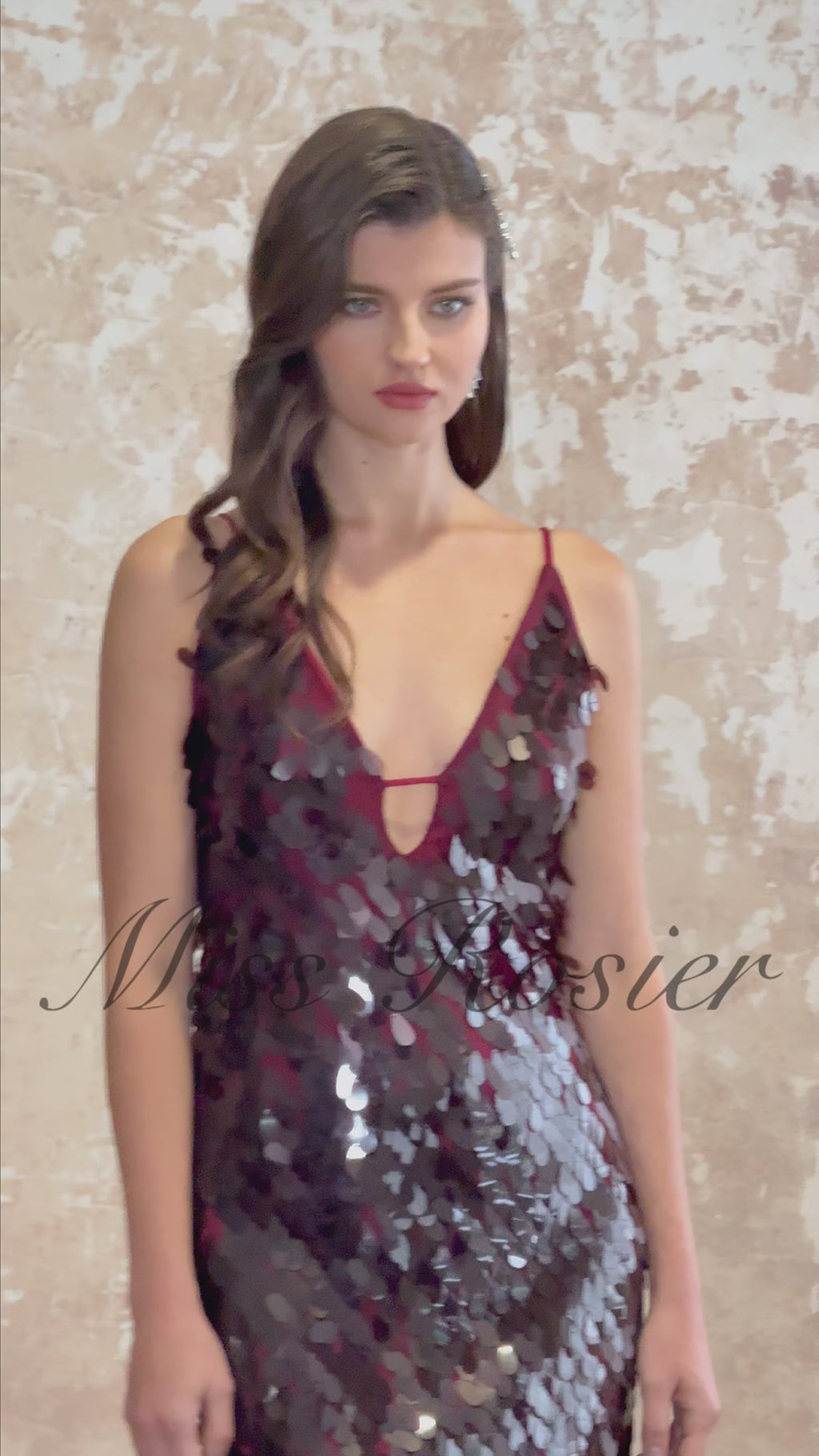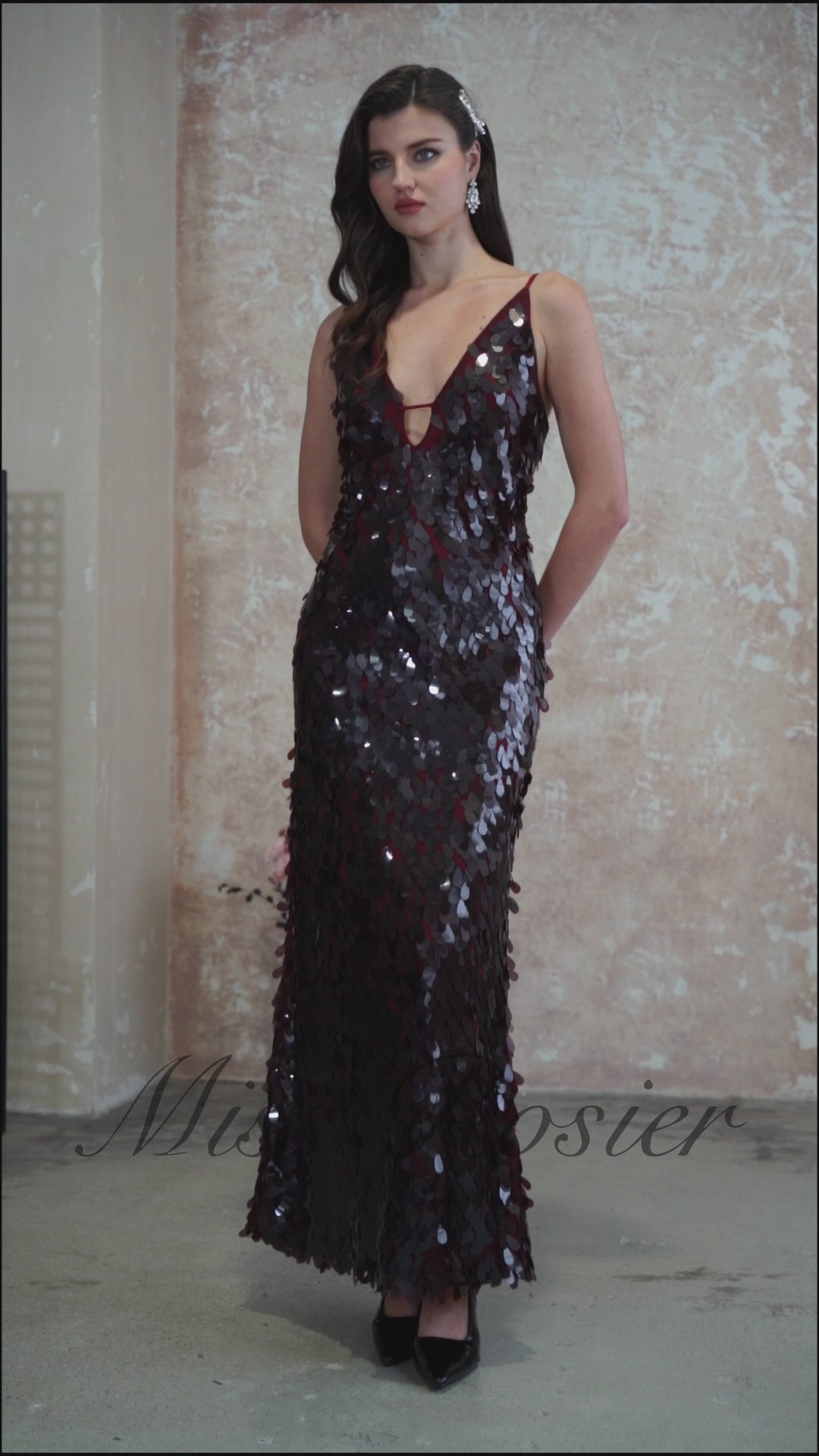 فستان طويل برقبة على شكل V من Lucyna Brown مزين بالترتر