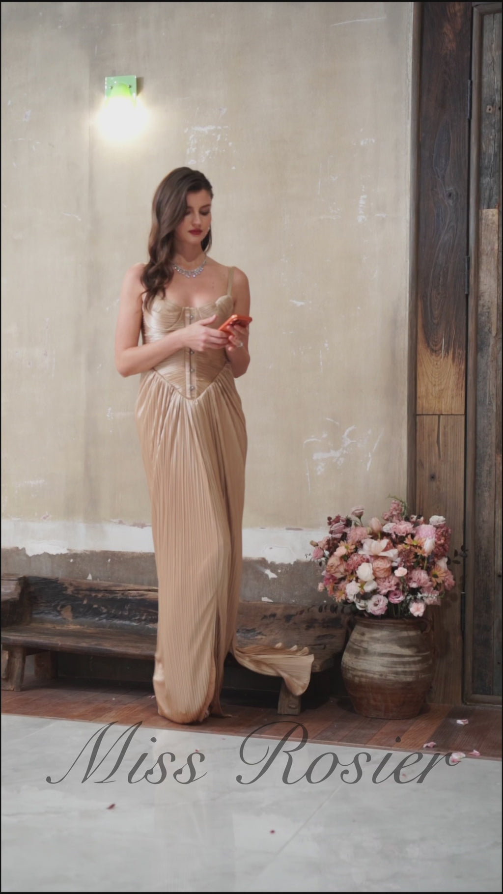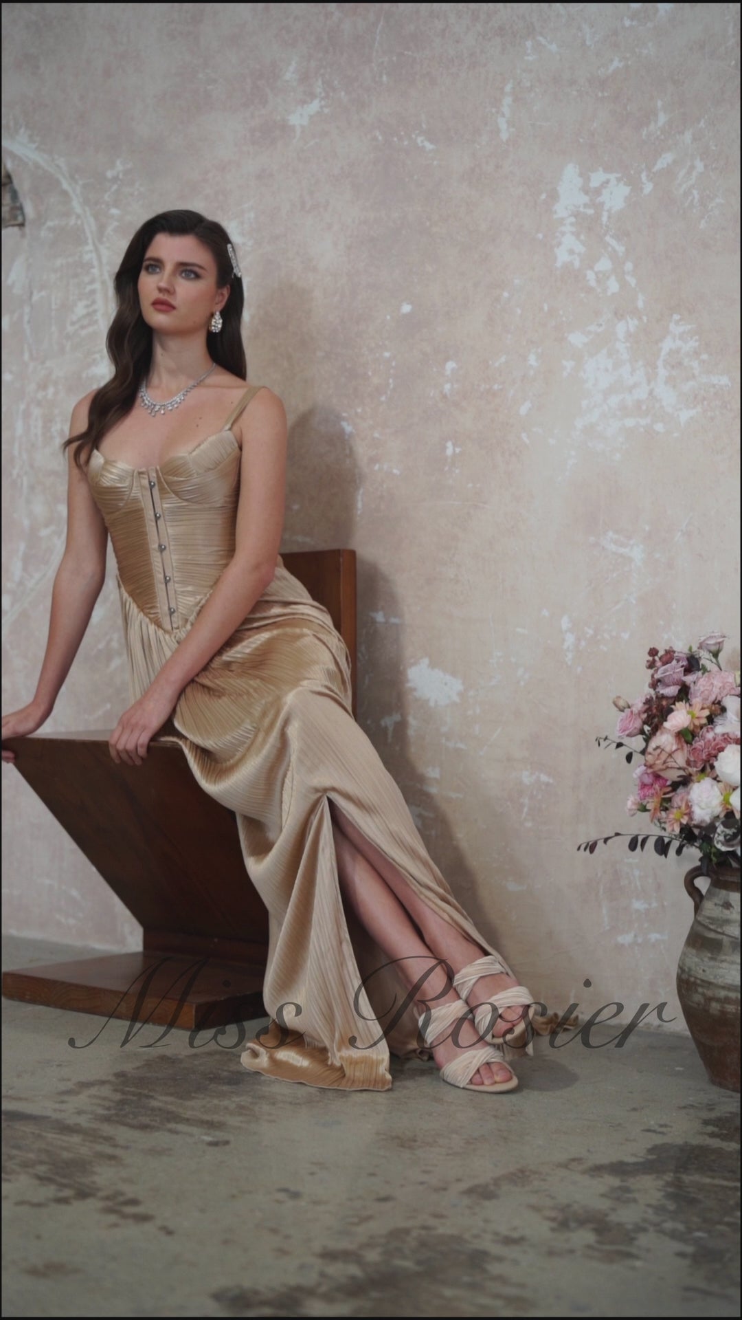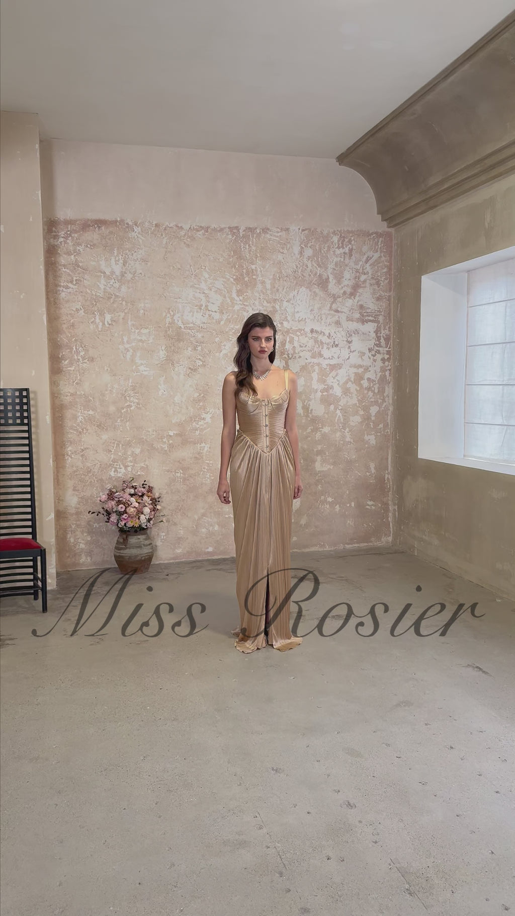 فستان ماكسي كورسيه لامع مطوي من Nicoletta Gold
